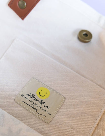 Our canvas tote bags are custom made with heavy-weight, unbleached natural canvas, and are equipped with reinforced, vegan leather straps. We added functional details like brass snap closures and a handy interior pocket to keep your phone and keys at close reach. Our hand-painted designs are screen printed on the exterior in brilliant 5 and 6 color processing in Fort Lauderdale, FL.